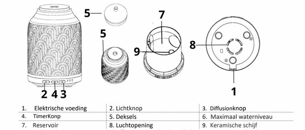 - stekker in het stopcontact en zet de aromadiffuser aan